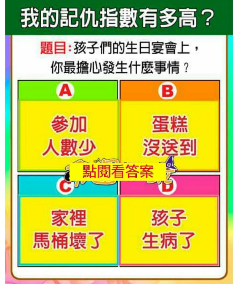題目:孩子們的生日宴會上,你最擔心發生甚麼事情?