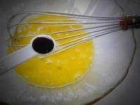 1 *全蛋與蛋黃,香草精先行拌勻,將葵花油一點一點倒入蛋糊中拌勻~