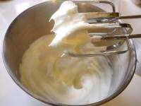 3 *打發蛋白,分三次倒入砂糖與鹽巴,將蛋白打至硬性發泡~