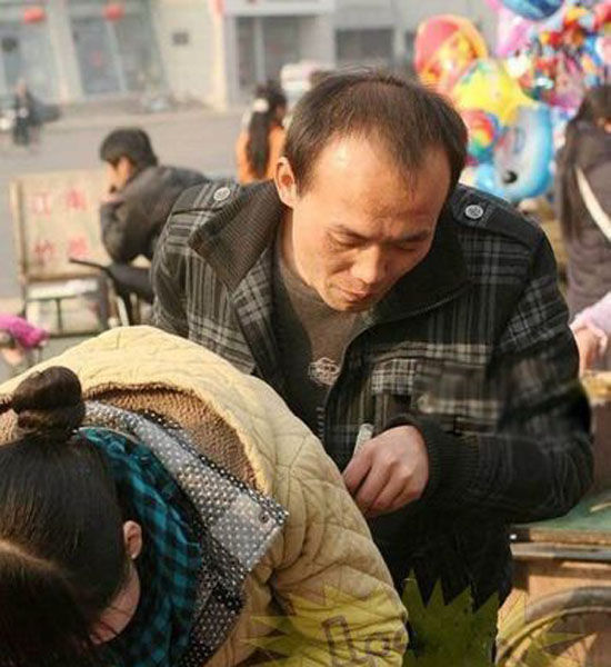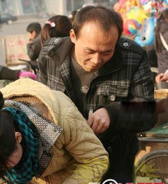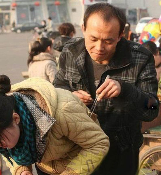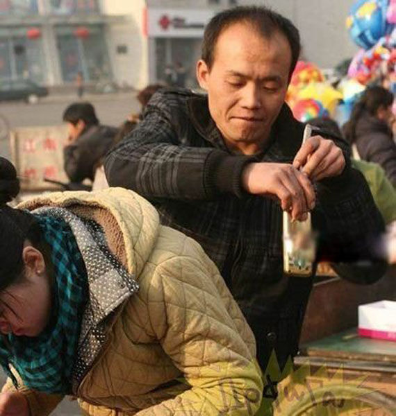 扒手開始他的「工作」,將「筷子」伸進了這個妹紙的口袋!
